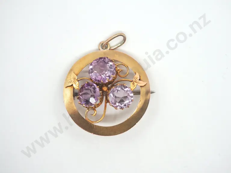Three Amethyst Brooch/Pendant in 9ct Gold Estimate: $140 - $160