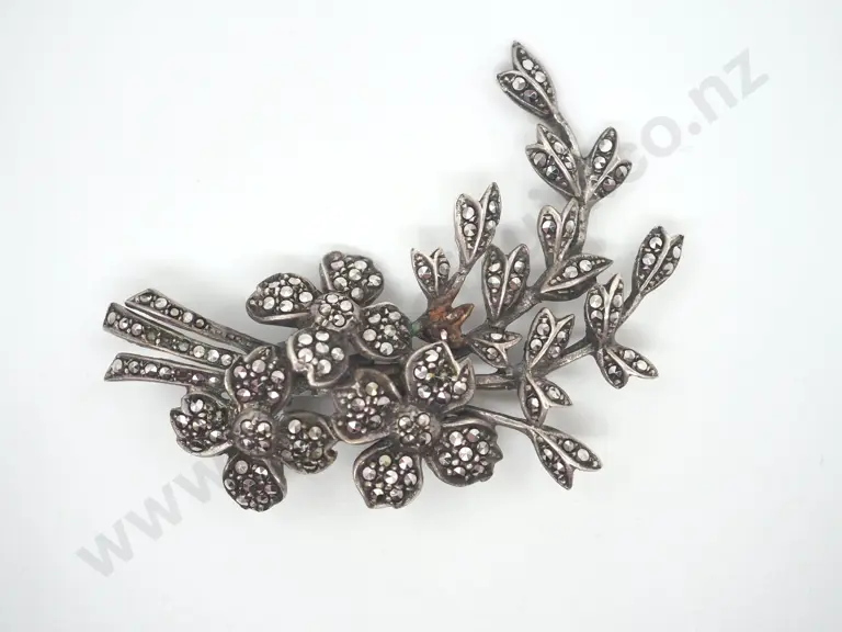 Sterling Silver Marcasite Brooch A/F Estimate: $20 - $30