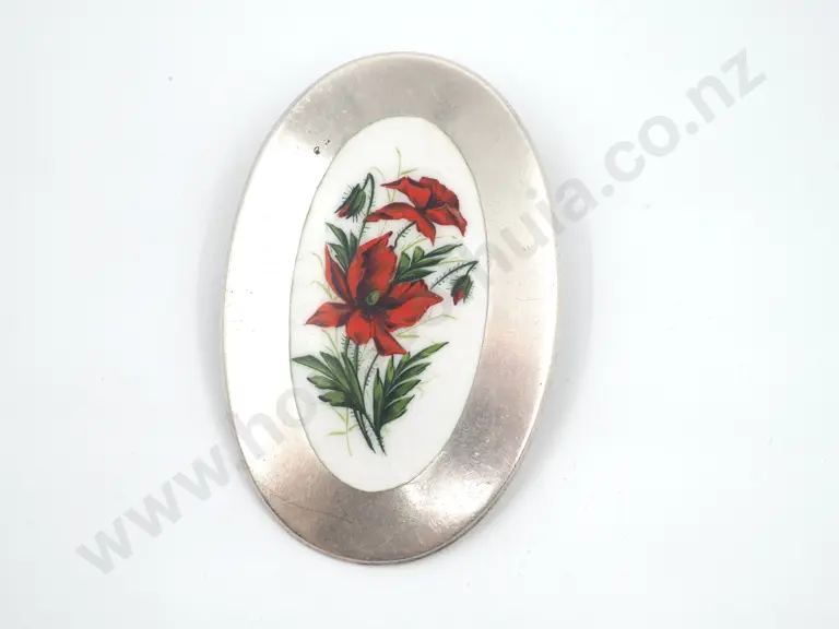 Sterling Silver & Painted Flowers on Central Inset, Brooch. Estimate: $40 - $60