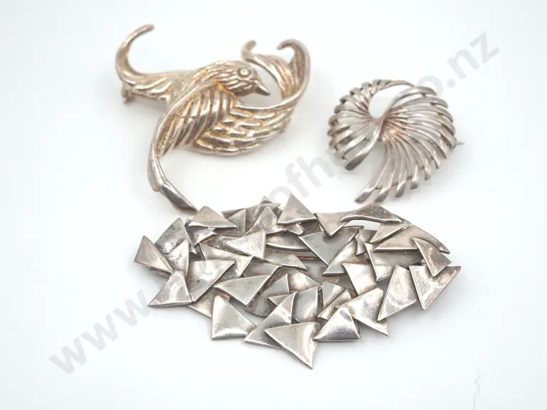 Three Decorative Sterling Silver Brooches Estimate: $60 - $80