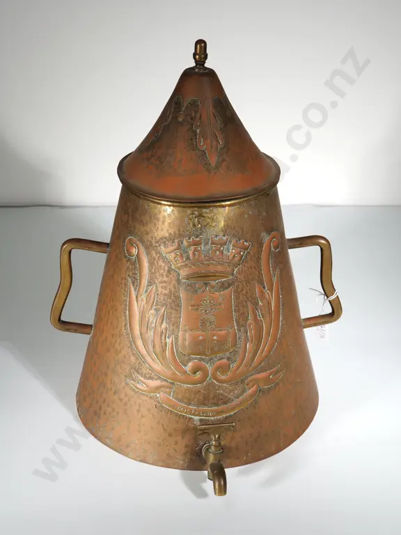 Crested Copper Dispensing Flagon w Heraldic Motif Estimate: $80 - $120