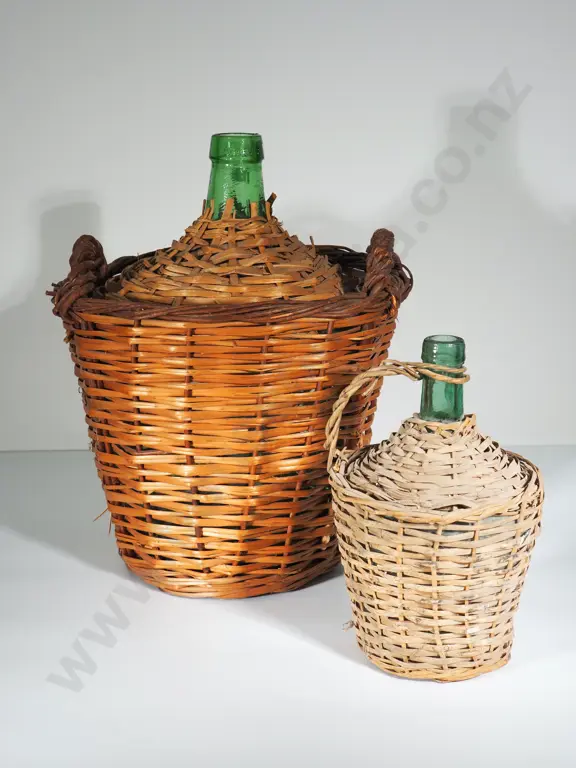Pair of Vintage Wicker Wrapped Glass Bottles Estimate: $60 - $80