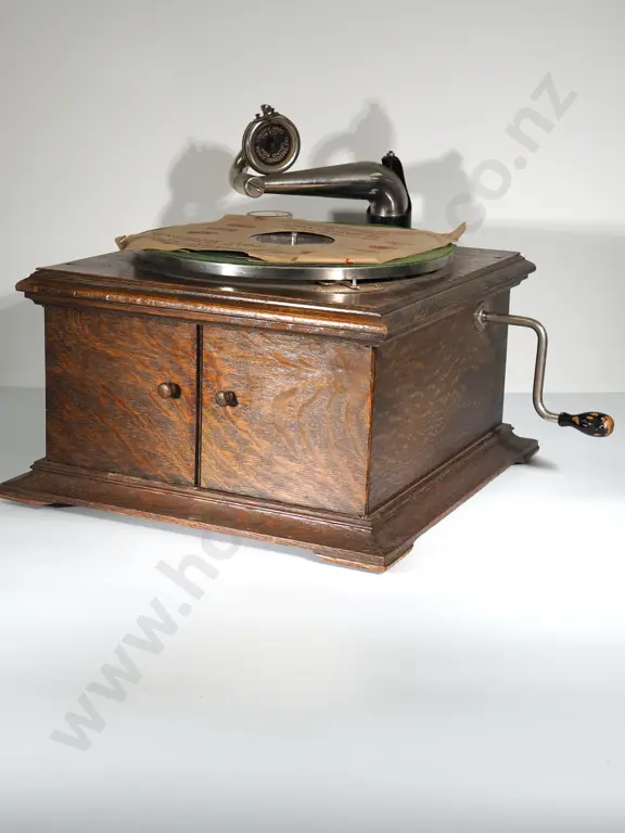 Antique Gramaphone: Working Mechanism & Three boxes of 78's Estimate: $80 - $120