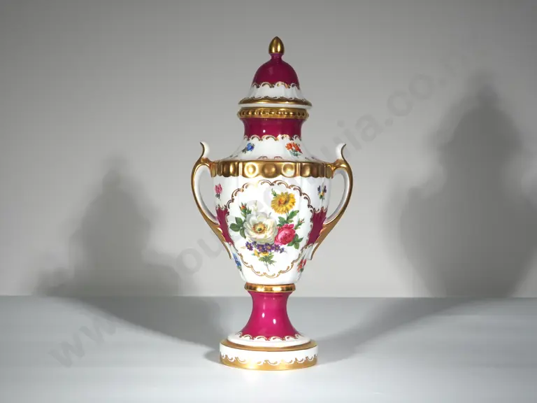 Gerold Porzellan Urn: Onate Floral Motifs w Burgandy & Gold Accents Estimate: $60 - $80