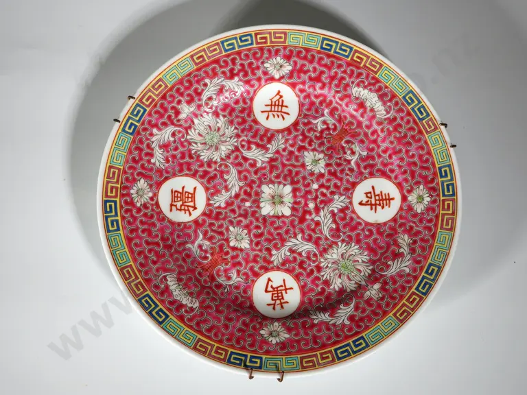 Oriental Decorative Plate in Pinks & Greens Complete w Wall Hanger Estimate: $30 - $50