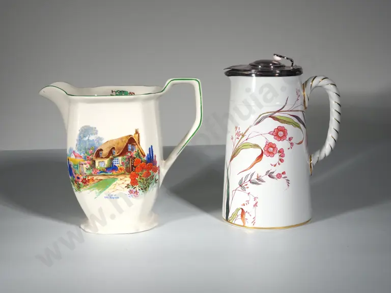 Two Decorative Porcelain Jugs: One Lidded (Victorian) Estimate: $60 - $80