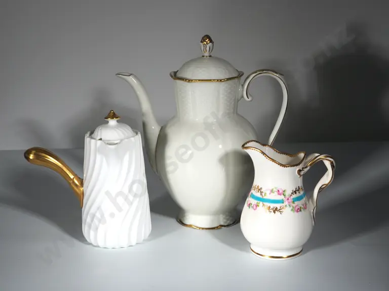 Coffee Pot, Choclate Pot, & MilkJug, All w Gilded Accents Estimate: $80 - $120