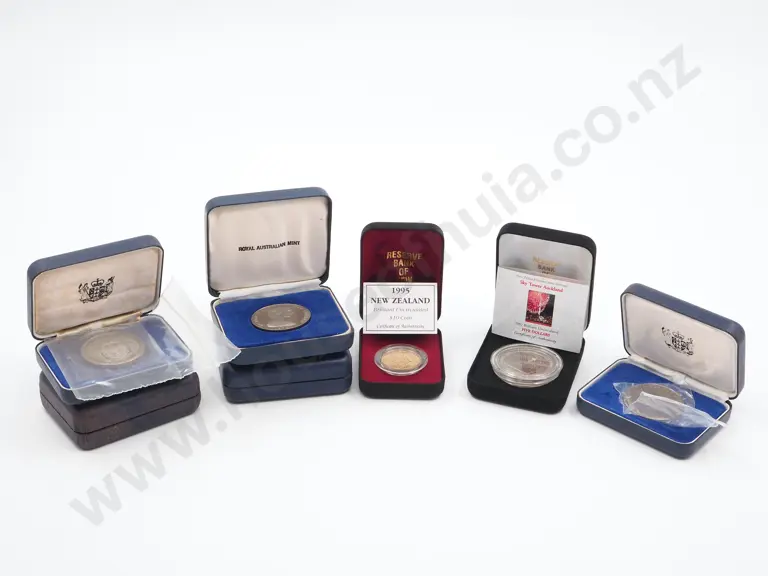 7 New Zealand Commemorative Cased Coins incl $5 and $10 coins Estimate: $50 - $80