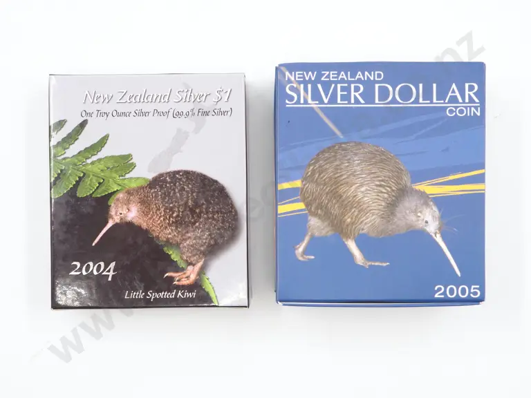 2 New Zealand Cased Silver Proof Dollar Coins Total CV $550 NZD Estimate: $200 - $400
