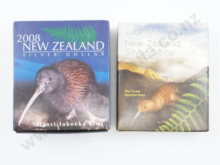 2 New Zealand Cased Silver Proof Dollar Coins Total CV $230 NZD Estimate: $180 - $220