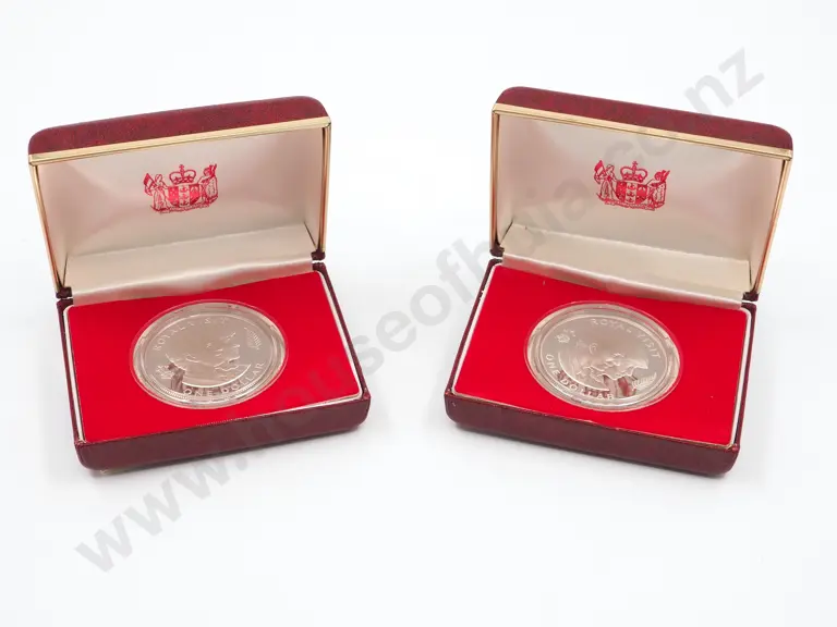 2 New Zealand Cased Silver Proof Dollars: Royal Interest Total CV $335 Estimate: $150 - $250