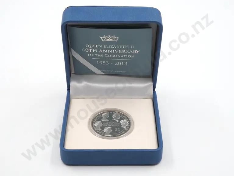 2013 New Zealand Diamond Jubilee Coronation Silver OZ Coin Estimate: $80 - $120
