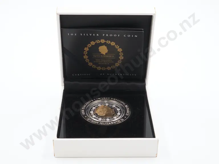 2015 New Zealand Longest Reining Monarch Queen Elizabeth II Silver Proof Coin Estimate: $200 - $300