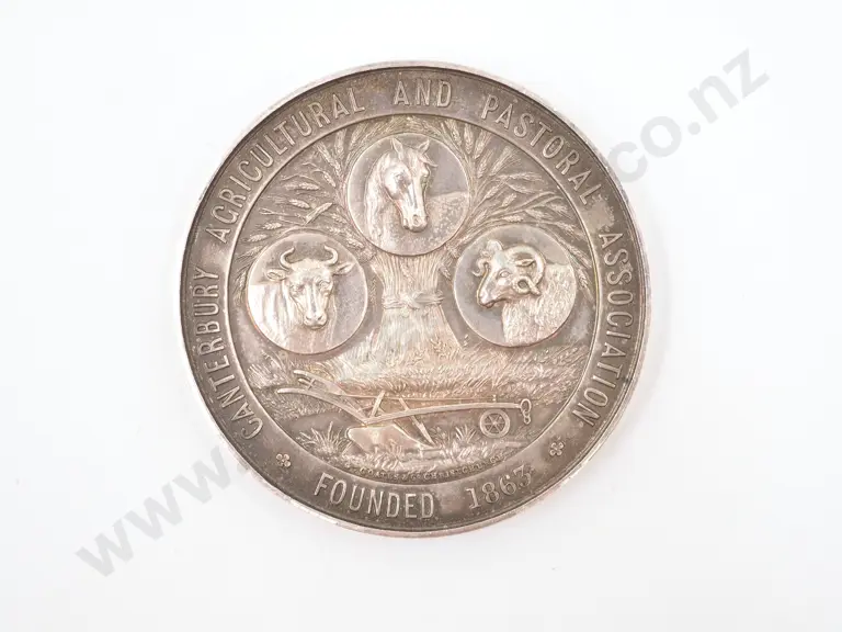 Large Sterling Silver A&P Medal by G Coates & Co Christchurch: Awarded to G L Pearson for Harrows, 1926 Estimate: $200 - $300