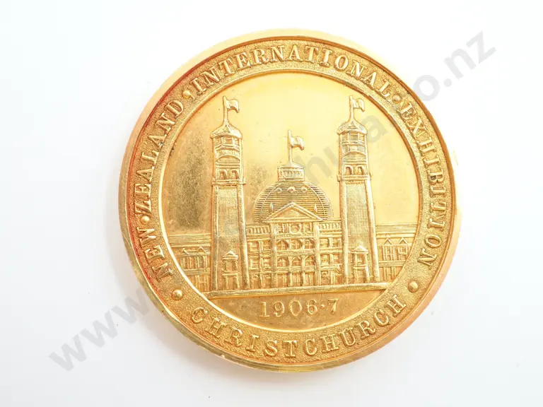 1906-07 New Zealand International Exhibition Christchurch 9ct Gold Award Medal to Watson Shennan Estimate: $1,000 - $1,400