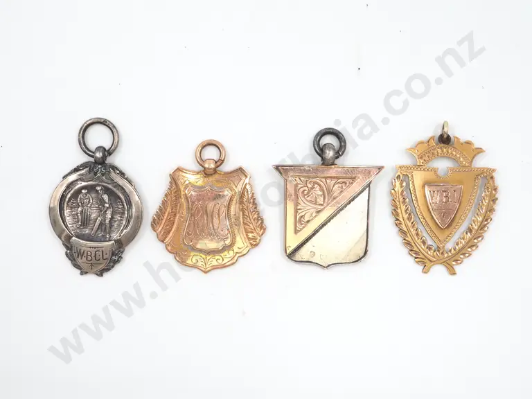 Collection of Sporting Prize Fobs to R Mclean: Two in 9ct Gold & 2 in Sterling Silver Estimate: $400 - $600