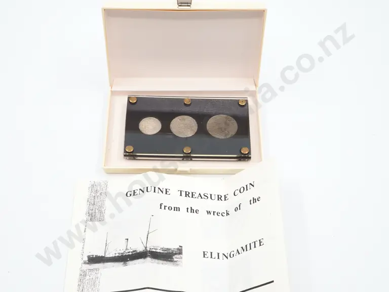 Set of Three Silver Eligamite Shipwreck Coins in Perspex Case with certificate Estimate: $150 - $250