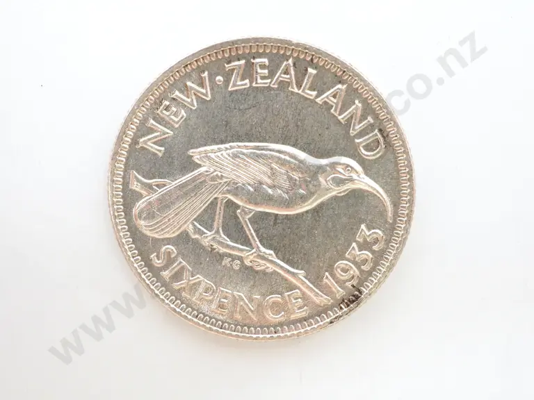 \NZ 1933 New Zealand Sixpence UNC Krause 2, CV $250 NZD Estimate: $80 - $120