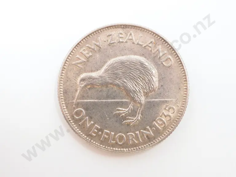 1935 New Zealand Florin gEF Krause 4, CV $350 NZD Estimate: $140 - $180