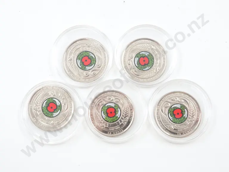 5 New Zealand 2018 Armistice Circulated 50 Cent Coin Estimate: $10 - $20