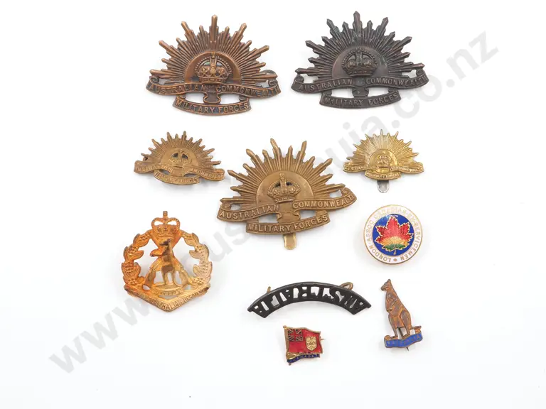 Assorted Lot of Australian Cap & Collar Badges Estimate: $40 - $60