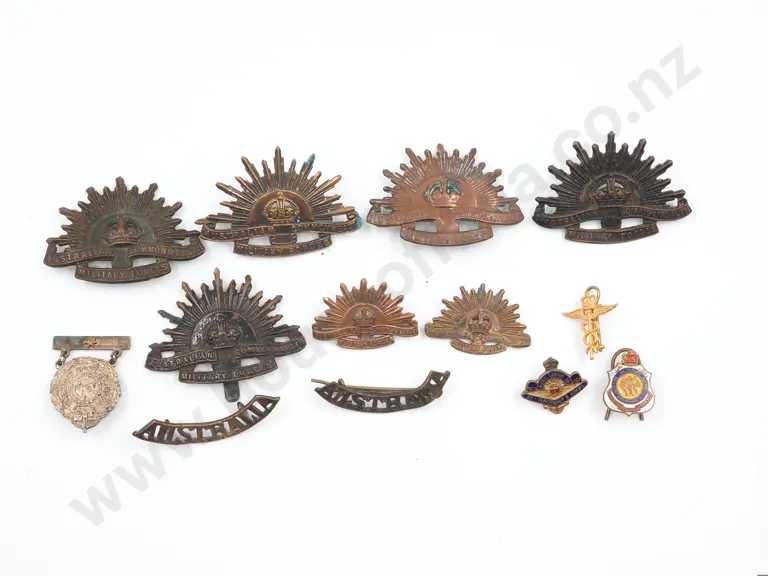 Large Assorted Lot of Australian Cap & Collar Badges Estimate: $60 - $80