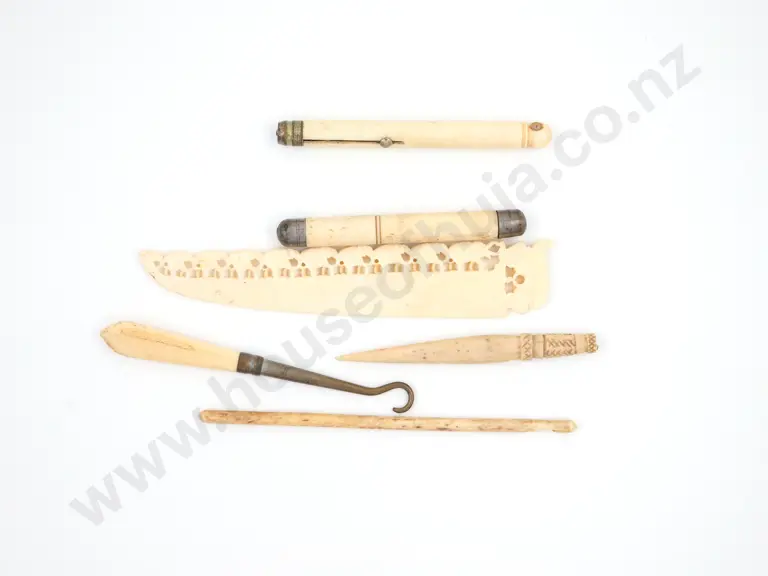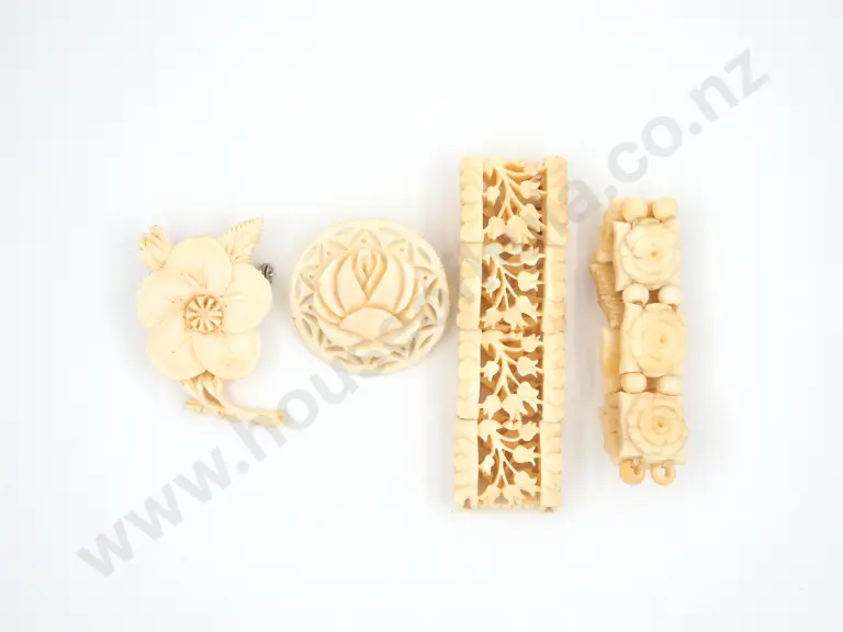 Two Decorative Bracelets & Two Brooches Carved in Bone