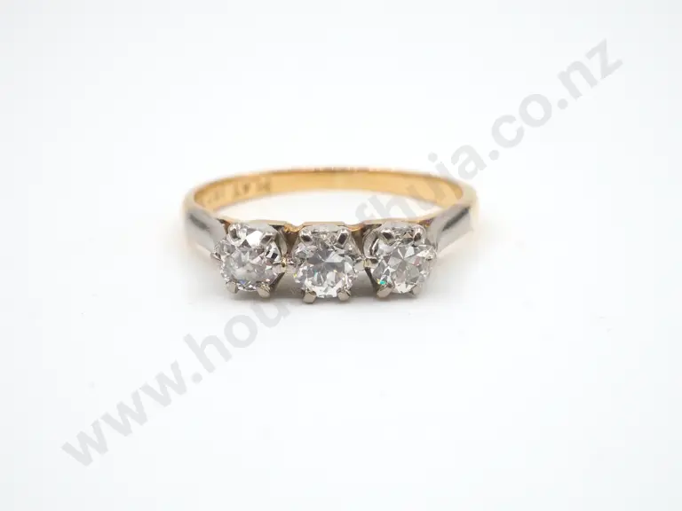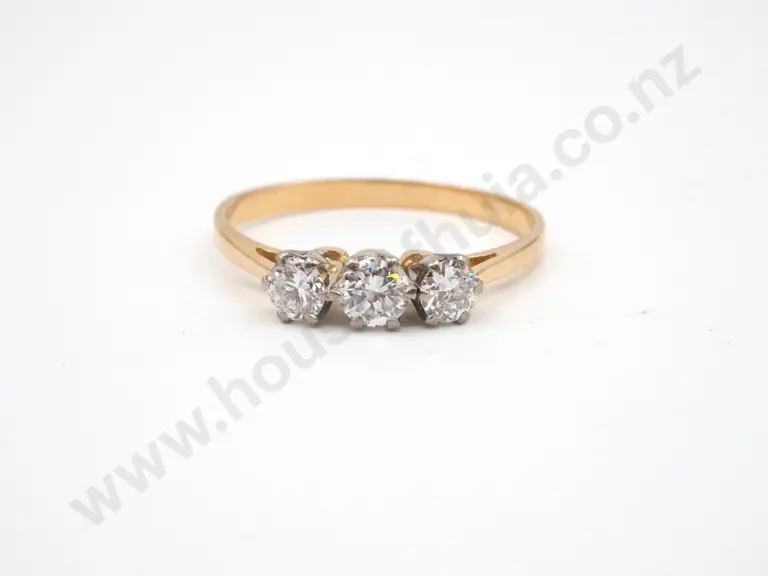18ct Gold Three Stone Diamond Ring: Valued at $3750 Estimate: $450 - $650