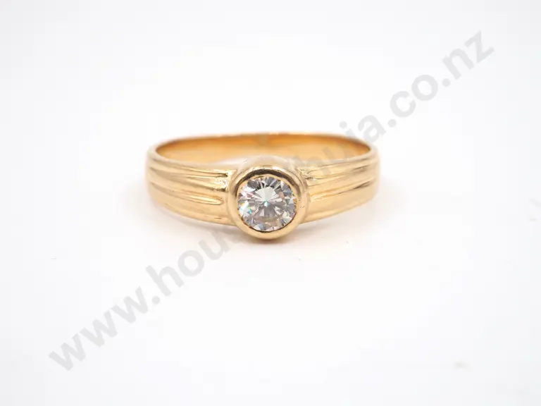 18c Gold Solitaire Diamond Ring: Valued at $3,190.00 Estimate: $500 - $700