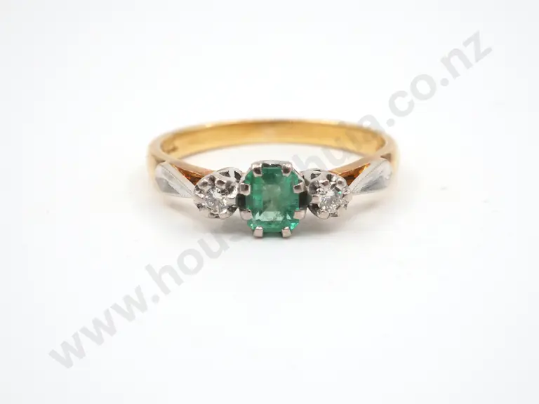 18ct Gold Emerald & Diamond Ring: Valued at $3,690.00 Estimate: $500 - $700