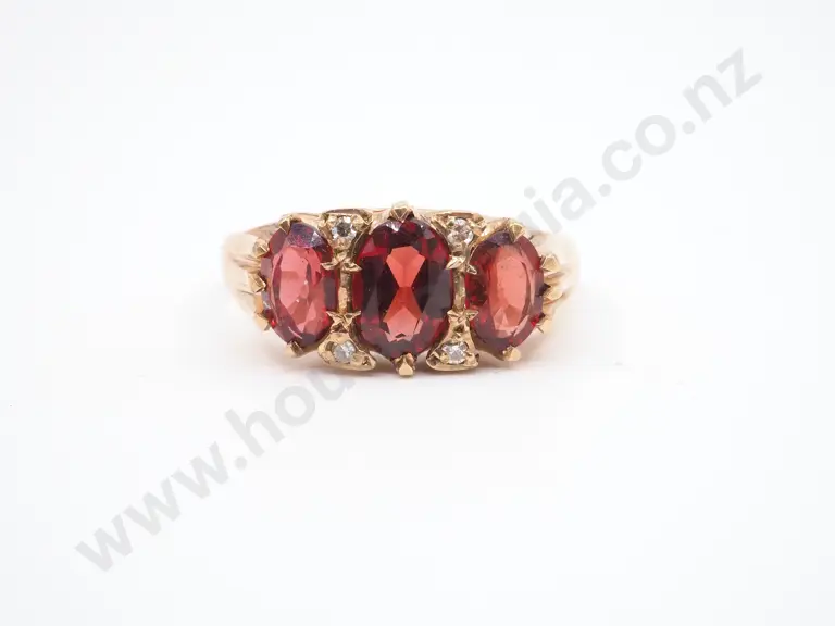 **Modern 9ct Gold Garnet & Diamond Ring Estimate: $220 - $250