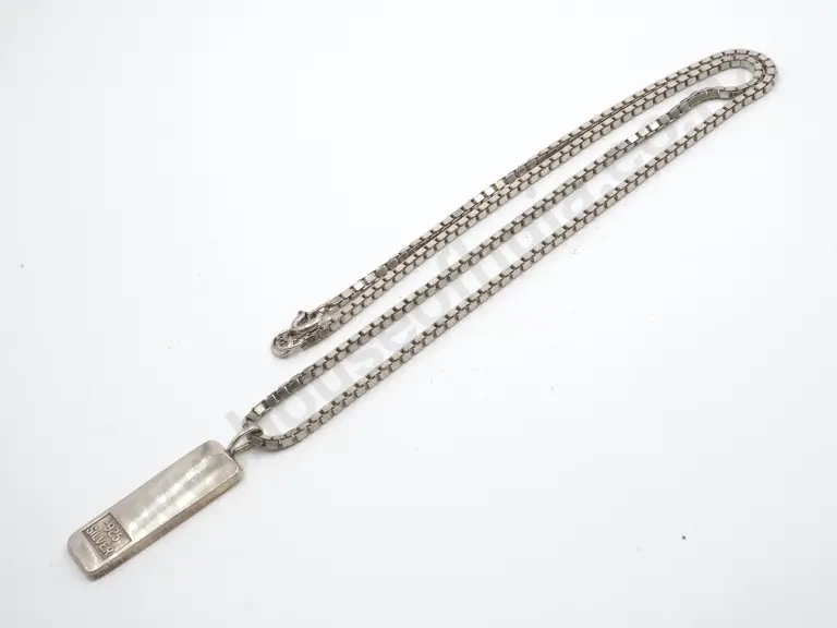Sterling Silver Box Link Chain & Sterling Silver Ingot Pendant Estimate: $80 - $100