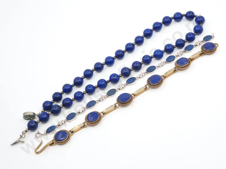 Two Lapis Bracelets Marked Silver & One Lapis Bead Necklace Estimate: $60 - $80