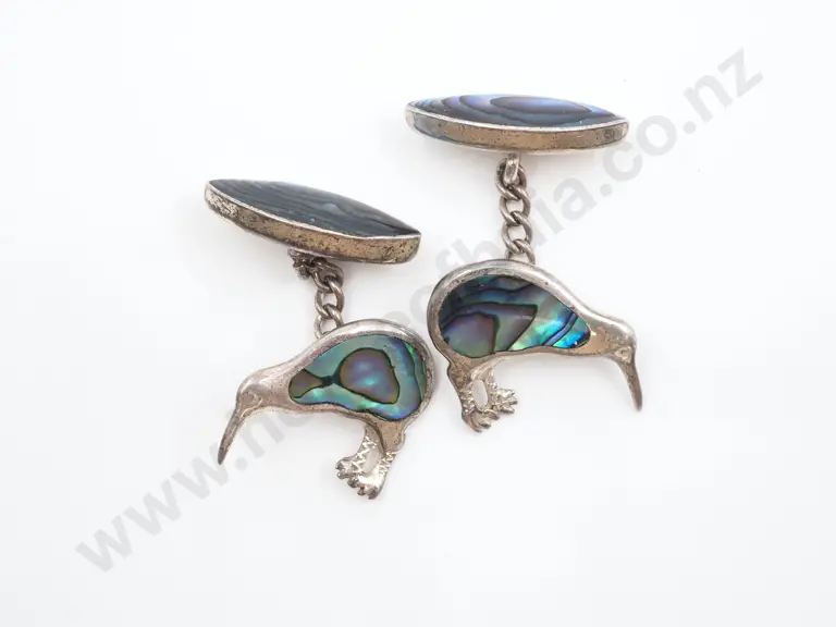 Vintage Sterling Silver & Paua Shell Kiwi Bird Cufflinks Estimate: $50 - $80