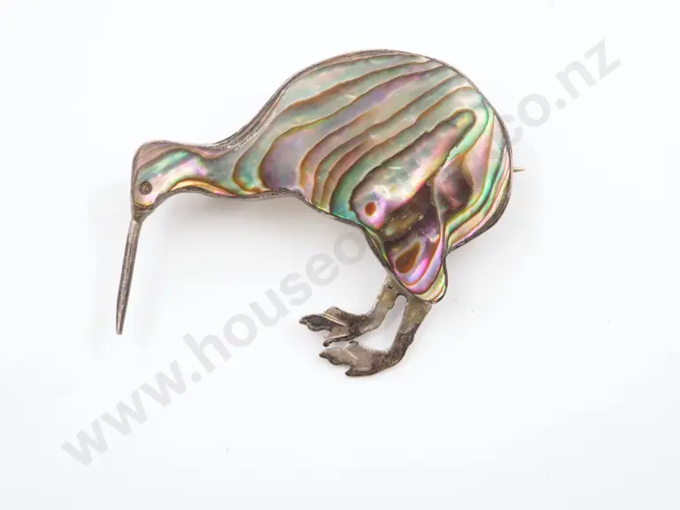 Vintage Sterling Silver & Paua Shell Kiwi Bird Brooch Estimate: $50 - $80