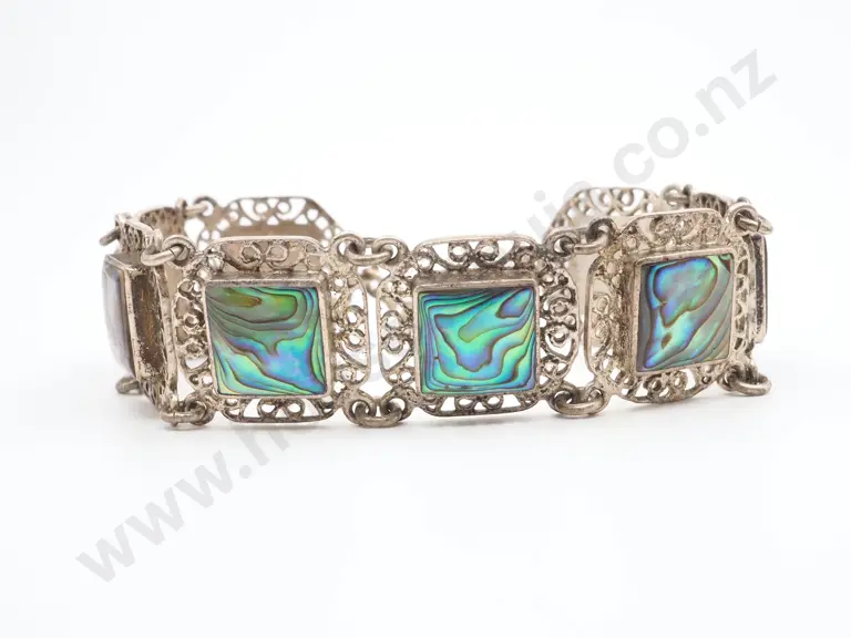 Vintage Sterling Silver Filigree Paua Shell Bracelet Estimate: $80 - $120