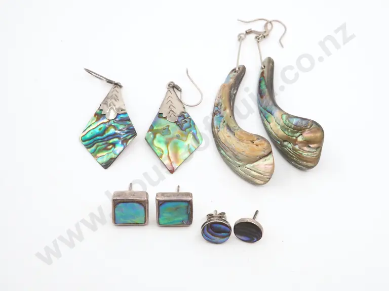 Four Pairs of Sterling Silver Paua Earrings Estimate: $60 - $80