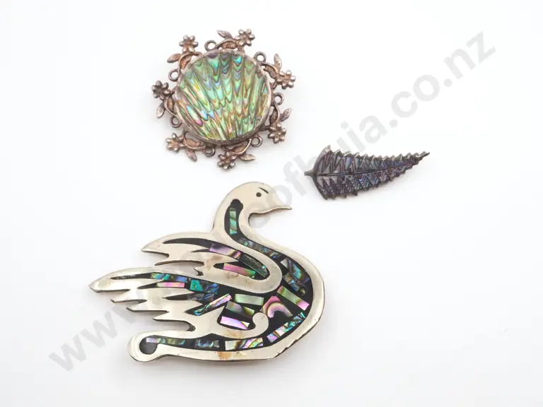 Three Paua Shell Silver Brooches Estimate: $80 - $120
