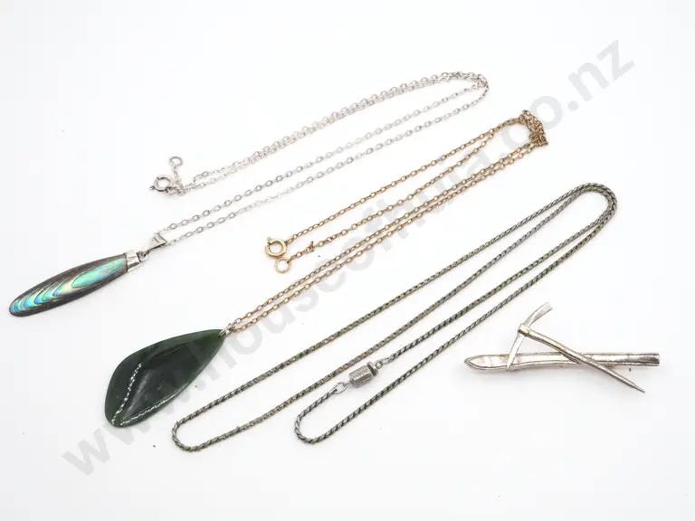 One Greenstone & One Paua Necklace; One Chain & One Mining Brooch Estimate: $70 - $90