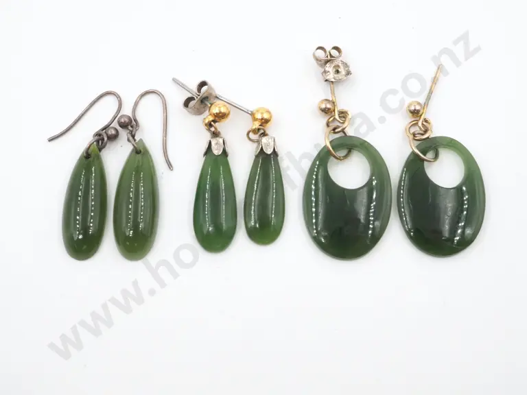Three Paris Greenstone Earrings Estimate: $60 - $80