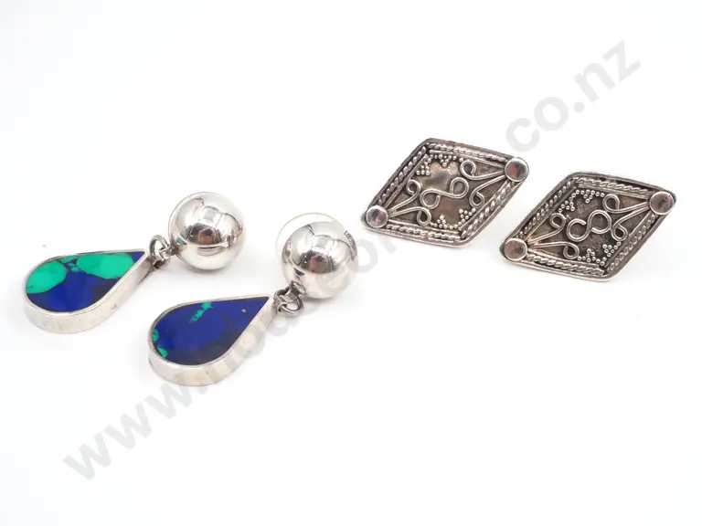 Two Pairs Sterling Silver Mexican Earrings Estimate: $50 - $70