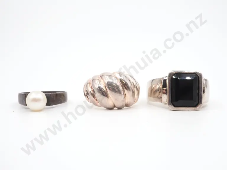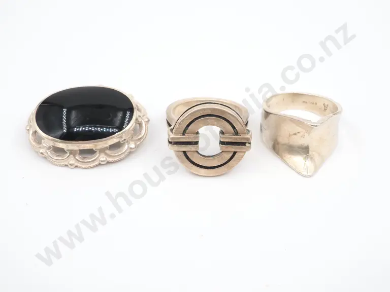 Sterling Silver Rings & Jet Brooch Estimate: $40 - $50