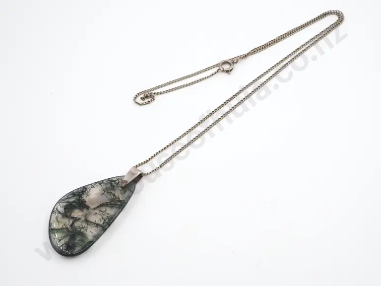 Sterling Silver Moss Agate Pendant & Chain Estimate: $60 - $80