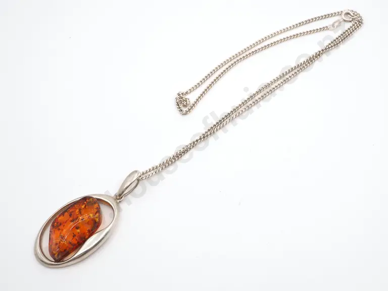 Modern Sterling Silver Amber Pendant &Chain Estimate: $60 - $80