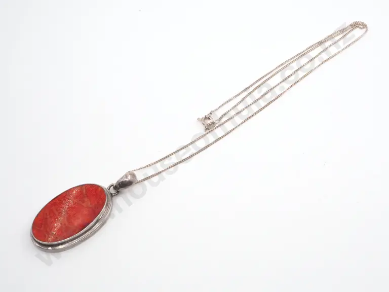 Sterling Silver Red/Orange Stone Pendant w Chain Estimate: $60 - $80