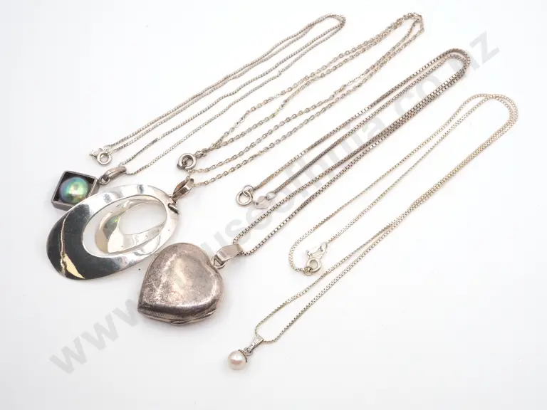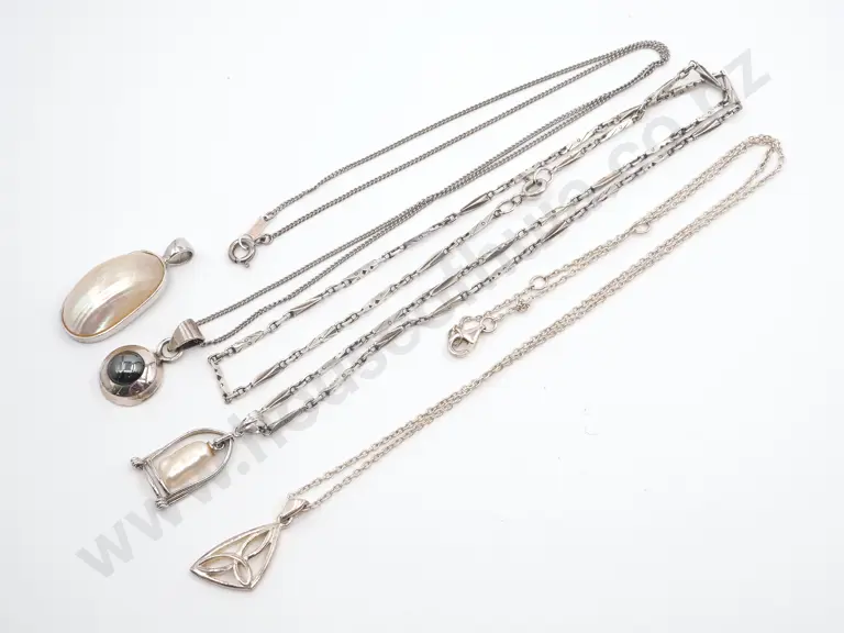 Three Sterling Silver Chains & Four Pendents Estimate: $80 - $120
