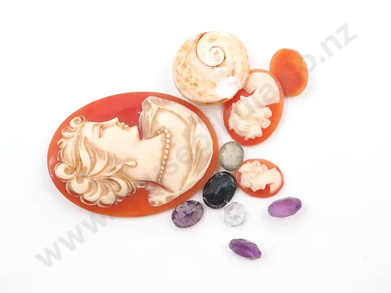 Assorted Lot of Loose Gemstones Cameos & Cats Eye A/F Estimate: $80 - $100