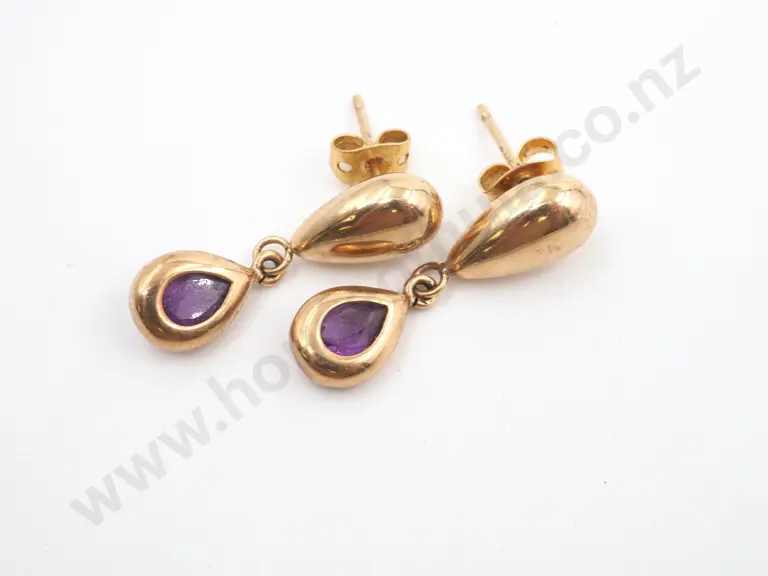 Pair of Modern 9ct Gold Amethyst Earrings Estimate: $150 - $180