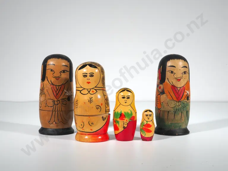 Three Antique Wooden Nested Russian Dolls (One Oriental) Estimate: $60 - $90