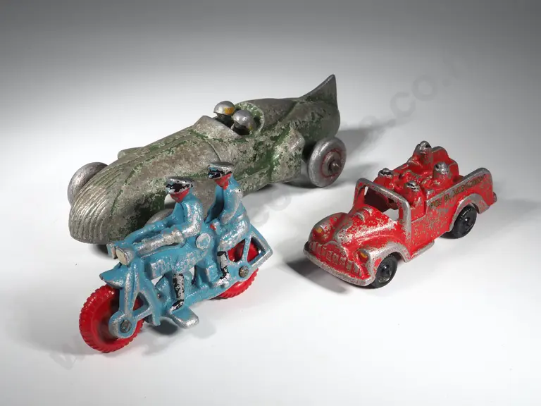 Three Vintage New Zealand Sand-Cast Toy Vehicles, Including Racing Car & Motorbike Estimate: $60 - $80